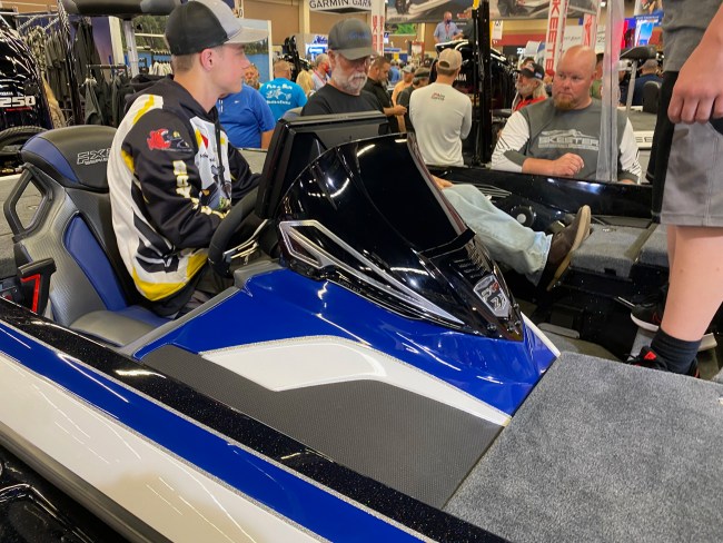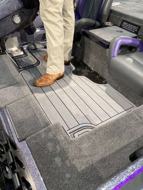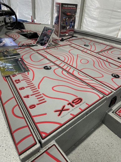 Joining our partners and friends in the Xpress Boats booth, the action at the SeaDek counter was non-stop as we educated folks on the many advantages of SeaDek over traditional marine carpet. While Xpress was an early adopter of SeaDek in the bass fishing world, more and more fishermen are finding ways to outfit their bass boats with the next generation of bass boat flooring. For many, gone are the days of wet, moldy carpet that is hard to clean and has to be replaced every few years. As a non-absorbent closed-cell foam material, SeaDek doesn’t absorb water, provides excellent non-skid, and is a breeze to keep clean. The advantages are clear.